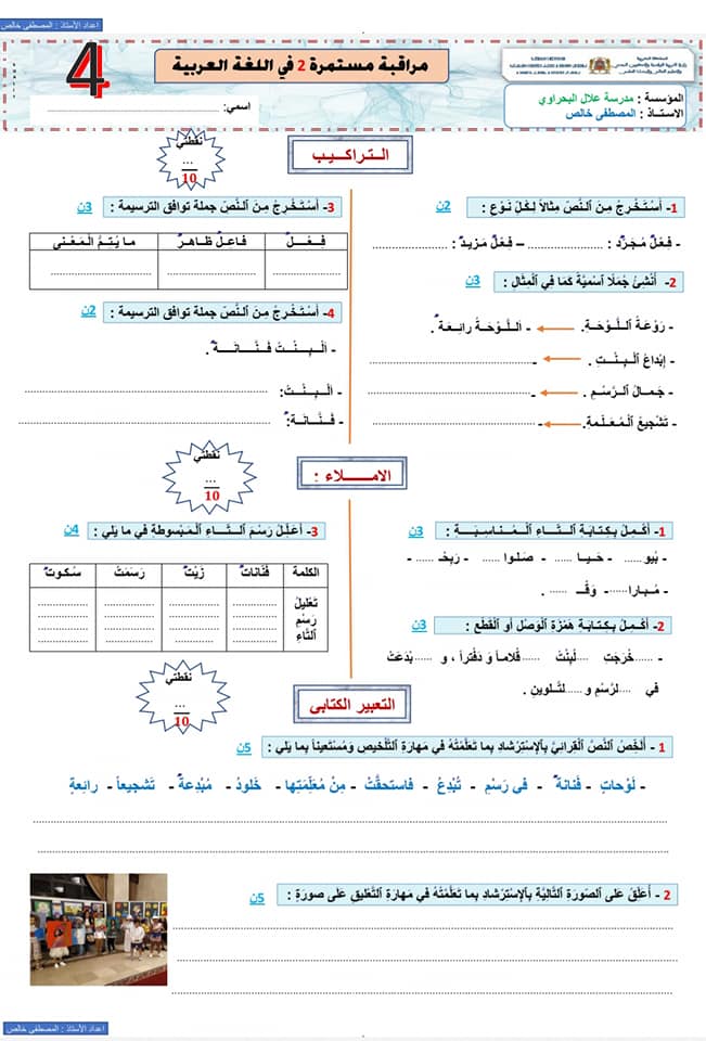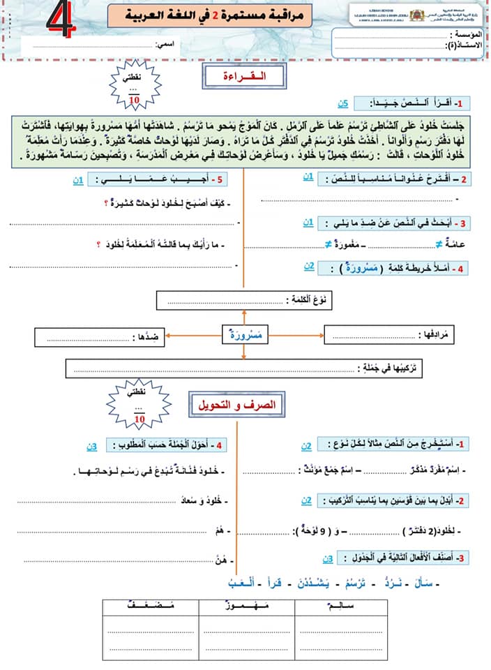 فروض اللغة العربية المستوى الرابع: