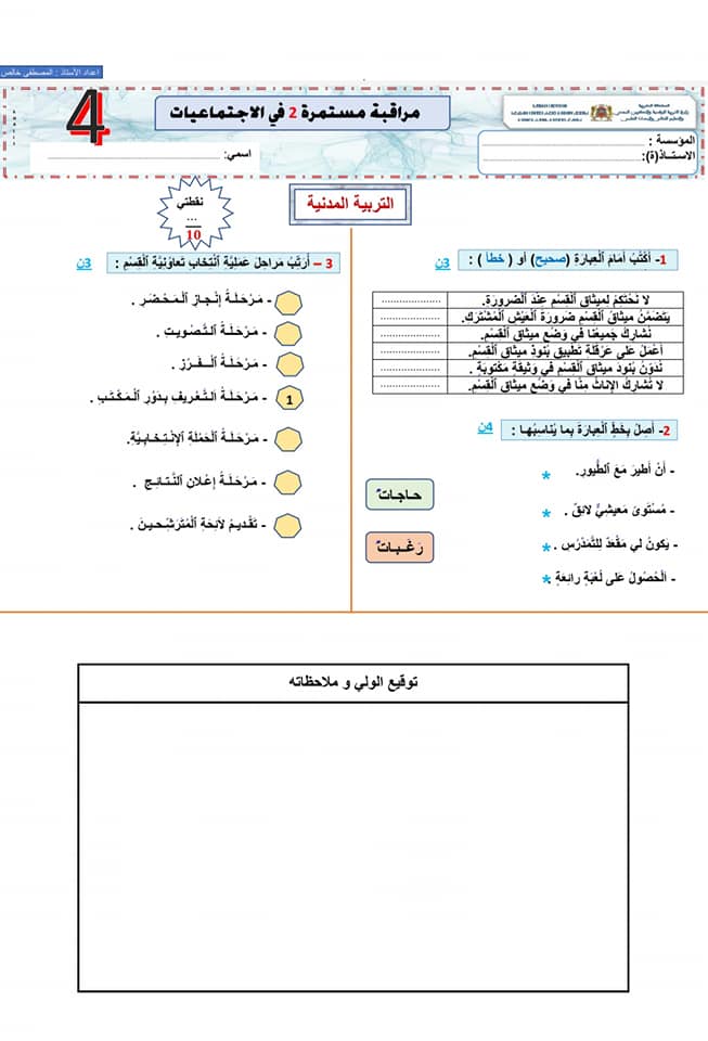 في النهاية نقترح عليكم هذه الاختبارات و الفروض رقم 2 للدورة الثانية، الخاصة بمادة النشاط العلمي.